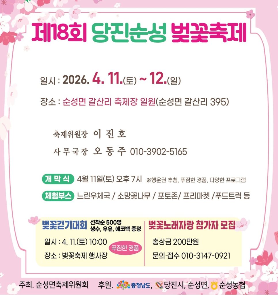 순성벚꽃축제는 매년 4월 중순경 개최되는 당진의 대표 봄 축제로,