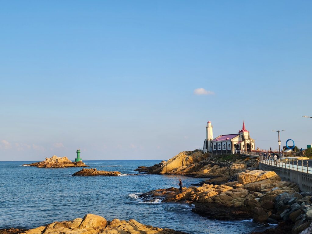 드라마 촬영을 위해 조성된 세트장이지만, 실제 성당처럼 보이는 건축물과 바다 풍경이 어우러져 부산의 대표적인 사진 명소가 되었습니다.