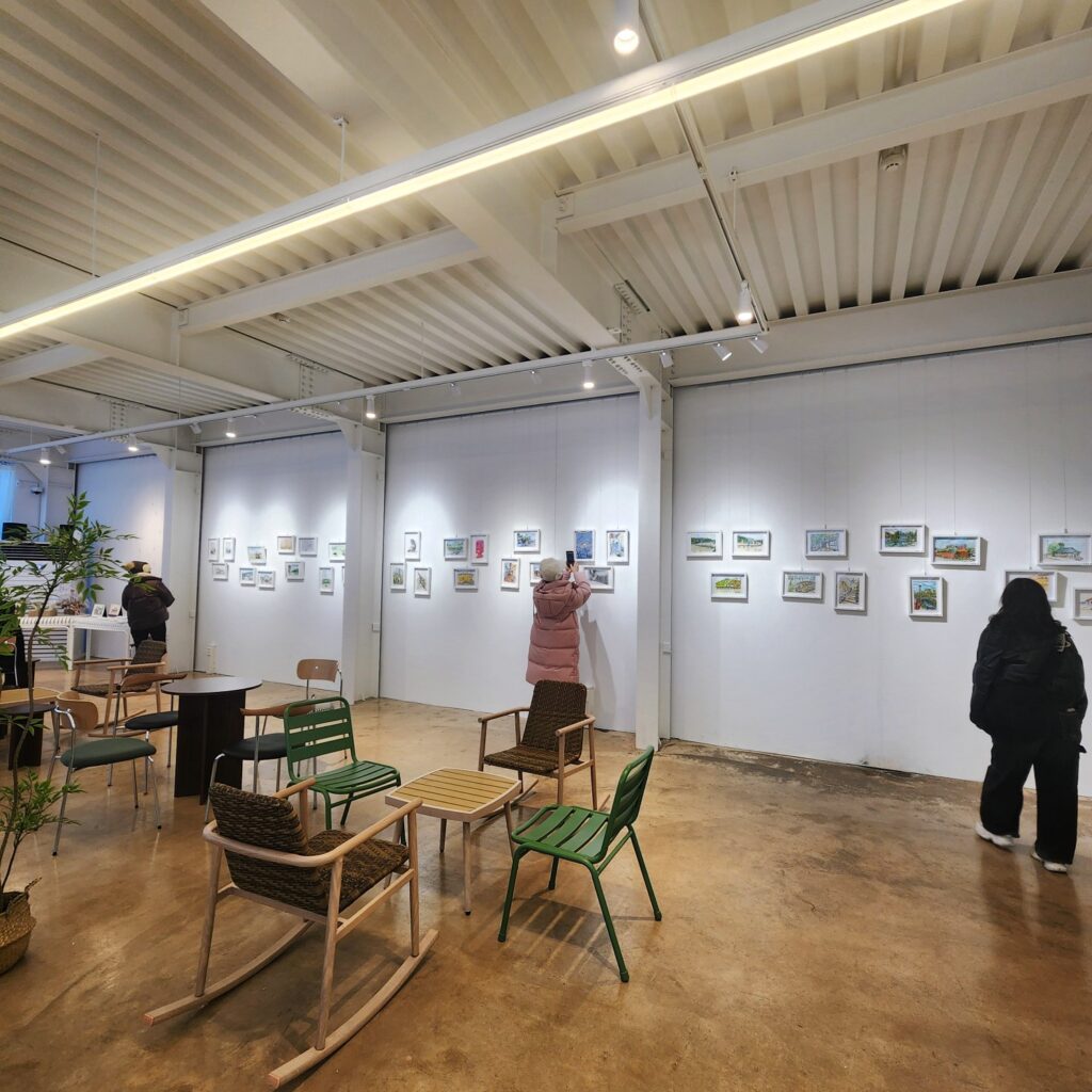 1층 실내에는 지역 작가와 연계한 전시 공간이 마련되어 있어 차를 마시며 작품을 감상할 수 있습니다.