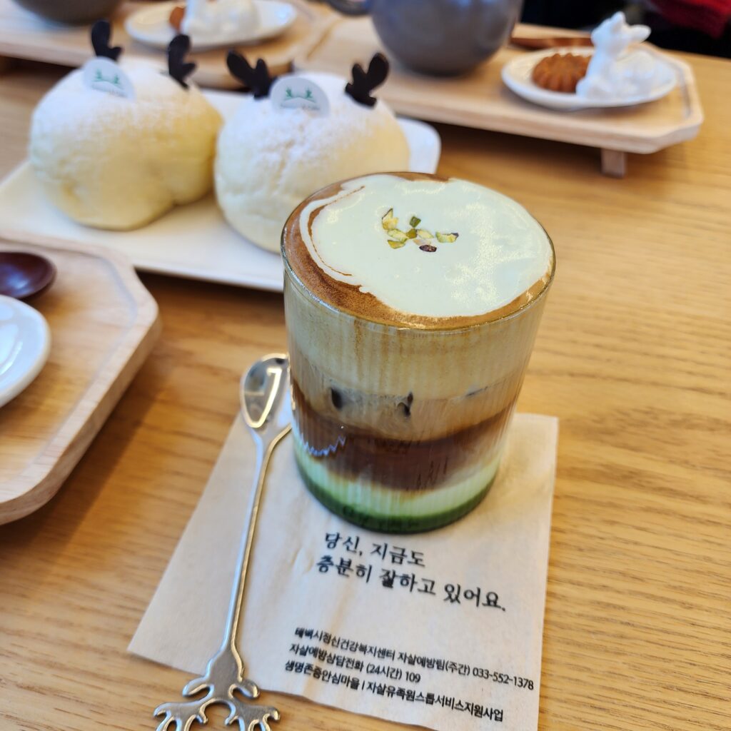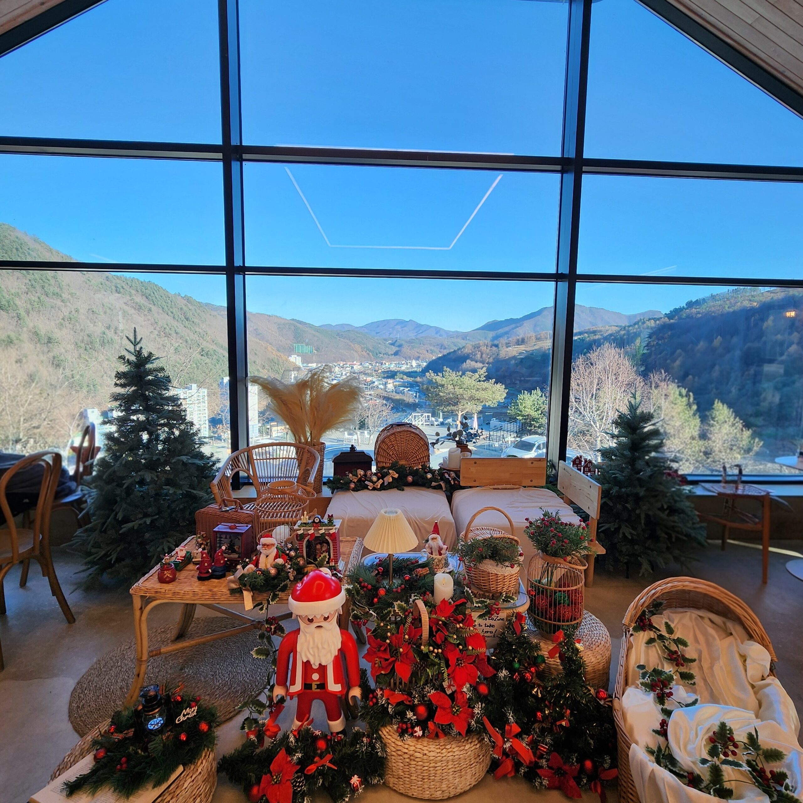 숲향긋은 실내에 다양한 식물이 배치된 온실형 카페입니다. 태백 시내에서도 비교적 조용하고 차분한 분위기를 느낄 수 있는 공간입니다.
