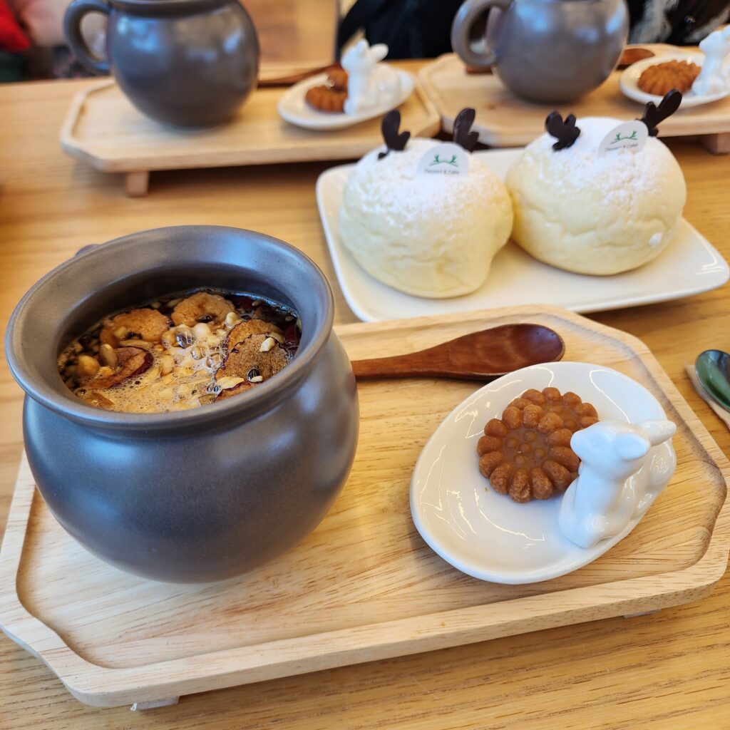카페 내부는 개방감 있는 구조로 되어 있으며, 산양 체험 이후 음료를 마시며 쉬어가기 좋습니다. 산양소금우유, 산양 토피넛라떼 등 이곳에서만 맛볼 수 있는 메뉴가 준비되어 있습니다.