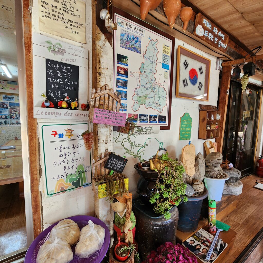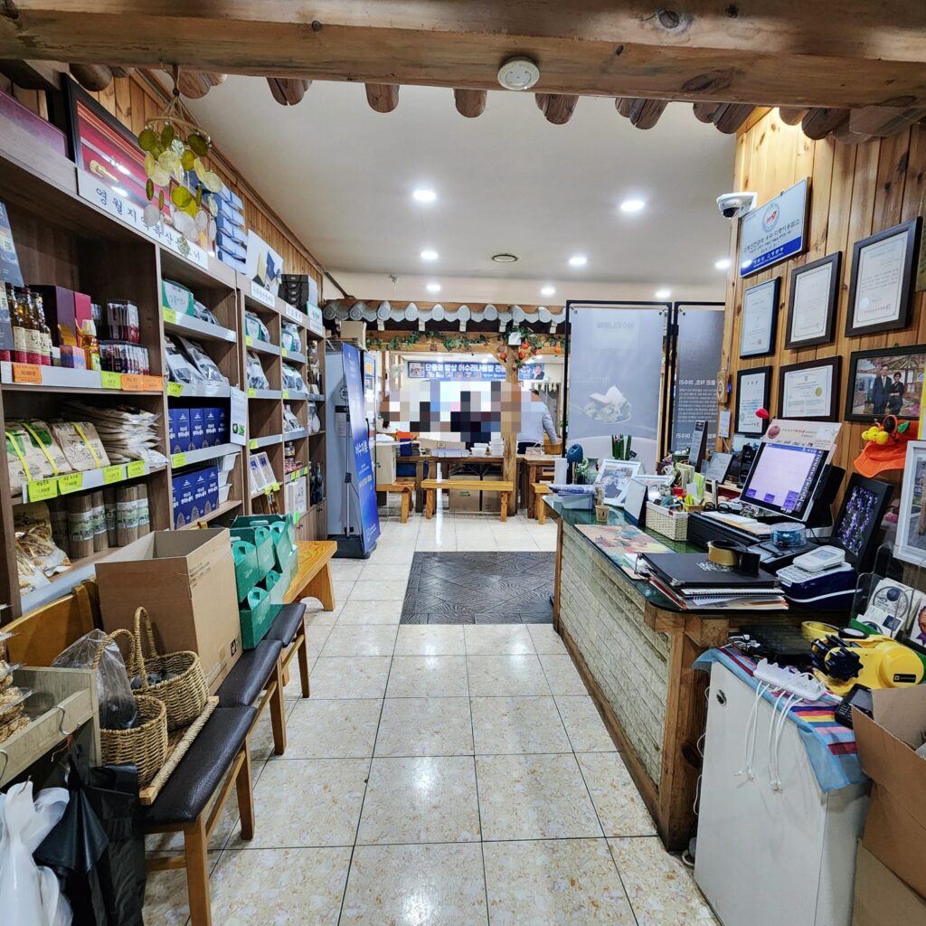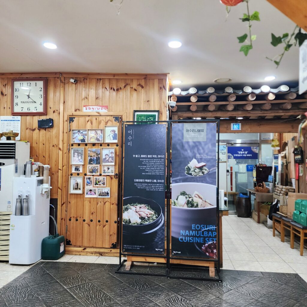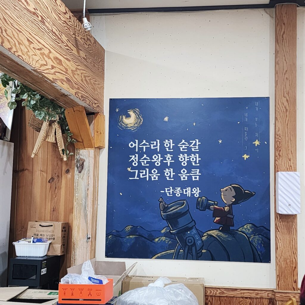 맛집이라고 했는데, 2층에 위치해 있어 처음엔 의아했지만, 실내는 넓고 손님도 꾸준합니다. 단종대왕과 어수리에 얽힌 이야기가 곳곳에 남아 있습니다.