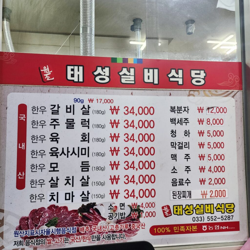 태백 한우는 ‘실비’라는 이름처럼 가격 대비 만족도가 높습니다. 연탄불에 굽지만 냄새는 거의 없고, 고기는 빠르게 익혀 바로 먹는 게 포인트죠.
