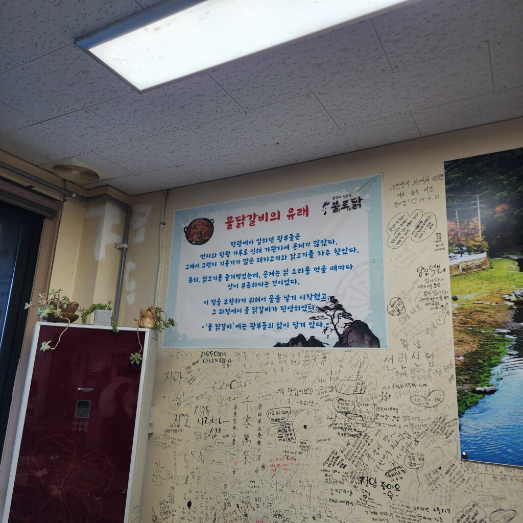 물닭갈비는 탄광에서 일하던 광부들의 삶에서 태어났습니다. 부족한 양을 채우기 위해 물을 넣어 끓이던 방식이 지금은 태백의 명물이 되었죠.